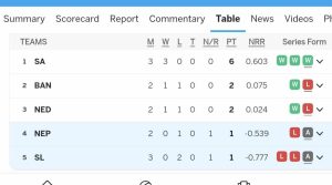 अमेरिका – आईसीसी टी २० विश्वकप २०२४ मा नेपाल र श्रीलंकाबीचको खेल वर्षाको कारण रद्द भएको छ । योसँगै दुबै टोलीले १-१ अंक बाँडेका छन् ।