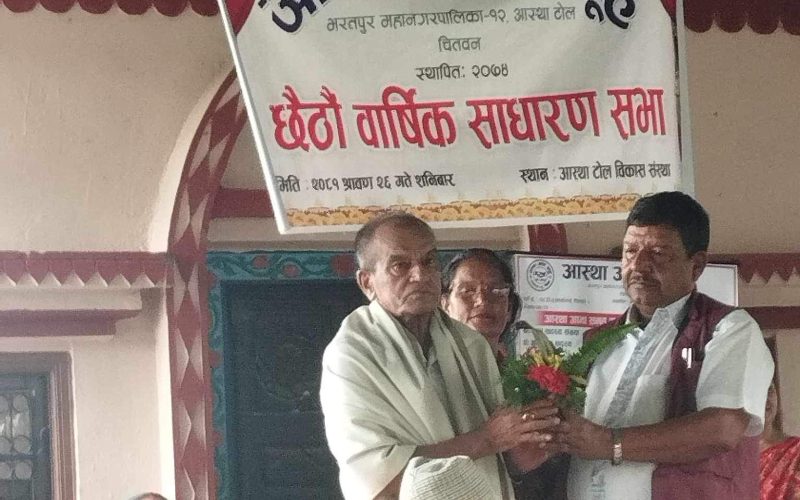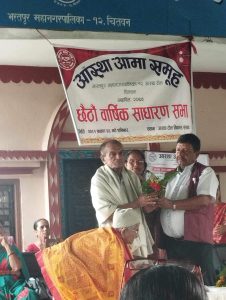 चितवन – आस्था टोल आमा समुहको छैटौ वार्षिक साधारण सभा सम्पन्न भएको छ । सदस्य संख्या २३७ रहेको आमा समुहको वार्षिक साधारण सभा आफ्नै भवनमा राखिएको थियो । उक्त कार्यक्रममा स्वागत मन्तब्य संस्थाका उपाध्यक्ष लोक माया थापाले दिनु भएको थियो । साधारण सभाको उद्घाटन संस्थाका अध्यक्ष अमृत भण्डारी प्रमुख अतिथि आदर्श गृह नेपाल भरतपुरका मिना खरेल तथा विशिष्ट अतिथि भरतपुर महानगरपालिका वडा नं. १२ का वडा अध्यक्ष लेखराज पन्तले गर्नुभएको थियो ।