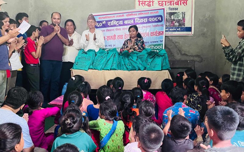 ६० औँ राष्ट्रिय बालदिवसमा ग्रीनल्याण्ड पब्लिक स्कुलले कालिका नगरपालिका १० मा रहेको सिद्धी चेपाङ्ग छात्रावासका रहेको ६५ जना बालबालिकालाई स्टेसनरी , हेल्थकिट र खाद्यन्न सामान प्रदान गरि सहयोग गरेको छ ।