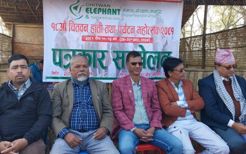 आयोजक क्षेत्रीय होटल संघ चितवनले सोमबार पत्रकार सम्मेलनको आयोजना गरी पर्यटन महोत्सवको उद्देश्य र तयारीको बारेमा जानकारी दिएको हो । सौराहा सहित समग्र चितवनको पर्यटन विकासको लागि हरेक बर्ष सौराहामा हात्ती तथा पर्यटन महोत्सव हुँदै आएको संघका अध्यक्ष गंगा गिरीले जानकारी दिए । महोत्सवको राष्ट्रपति रामचन्द्र पौडेलबाट समुद्घाटन हुनेछ । ५० वर्षको इतिहास बोकेको चितवनको पर्यटनलाई स्थापित गर्न राष्ट्रपति पौडेलबाट चितवनलाई जैविक विविधता तथा वन्यजन्तुको पर्यटकीय राजधानी घोषणा गर्ने तयारी गरिएको पर्यटन महोत्सवका संयोजक रामकुमार आर्यालले जानकारी दिए । आवश्यक प्रक्रिया पुरा गरी हात्ती तथा पर्यटन महोत्सवको उद्घाटन समारोहका बीच जिल्लालाई जैविक विविधता तथा वन्यजन्तुको पर्यटकीय राजधानी घोषणा गर्ने उनले बताए ।