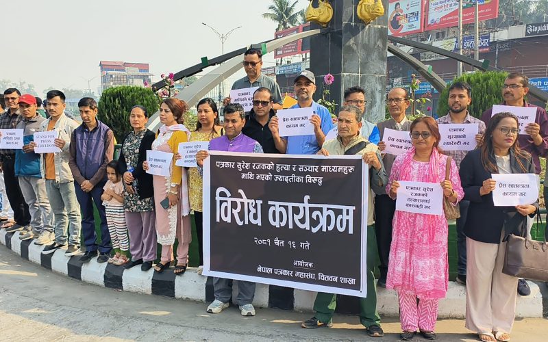 उक्त घटनाको विरोधस्वरुप आज बिहान पत्रकार महासङ्घ चितवन शाखाले कार्यालयदेखि चौबीसकोठीसम्म प्रदर्शन गरेको हो । प्रदर्शनपछि आयोजित सभामा नेपाल पत्रकार महासङ्घका केन्द्रीय सदस्य एवम् चितवन शाखाका सल्लाहकार नारायण अधिकारीले घटनाका दोषीलाई तत्काल पक्राउ गरी कारबाही गर्न माग गर्नुभयो ।