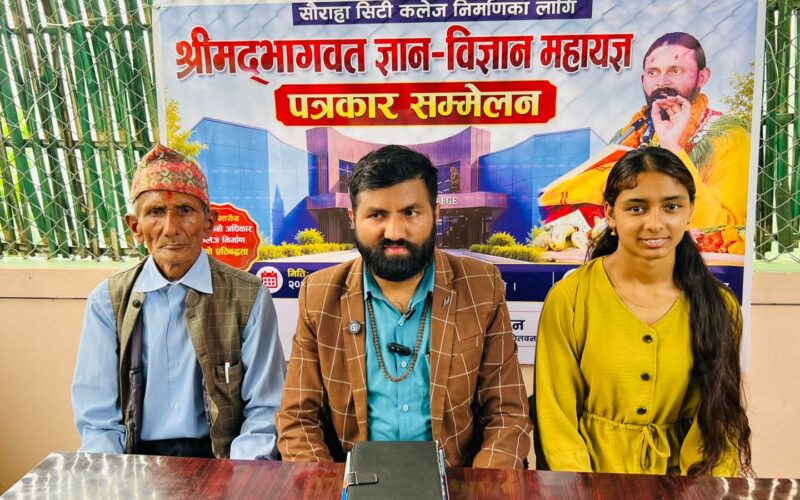 पूर्वी चितवनको रत्ननगरमा भोली सोमबार देखि कृषि, विज्ञान तथा प्राविधिक कलेज सञ्चालनको लागि श्रीमद्भागवत ज्ञान विज्ञान महायज्ञ सुरु हुँदैछ । थ्रि ब्रदर्श मिडियाले सौराहा सिटी कलेज निर्माणको लागि रत्ननगर वडा नं १५ विन्देश्वरी टोल, माधवपुरमा महायज्ञ आयोजना गरेको हो । आयोजकले आइतबार पत्रकार सम्मेलनको आयोजना महायज्ञको तयारी अन्तिम चरणमा पुगेको र सोमबार प्रदेश सभा साँसद तथा पूर्वमन्त्री कृष्णप्रसाद खनालले उद्घाटन गर्ने कार्यक्रम रहेको जनाएको छ ।